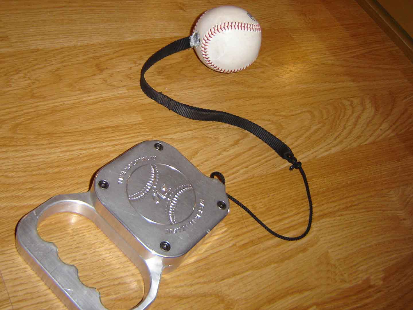 The cap of the retractoball is made of industrial-grade anodized aluminum, with a base of hardened plastic, a nylon cord, and a coiled spring, the Retract-O-Ball can be used in small spaces like a garage, a basement, your own yard, and is ideally suited to take to any game to get your warm-up swings.